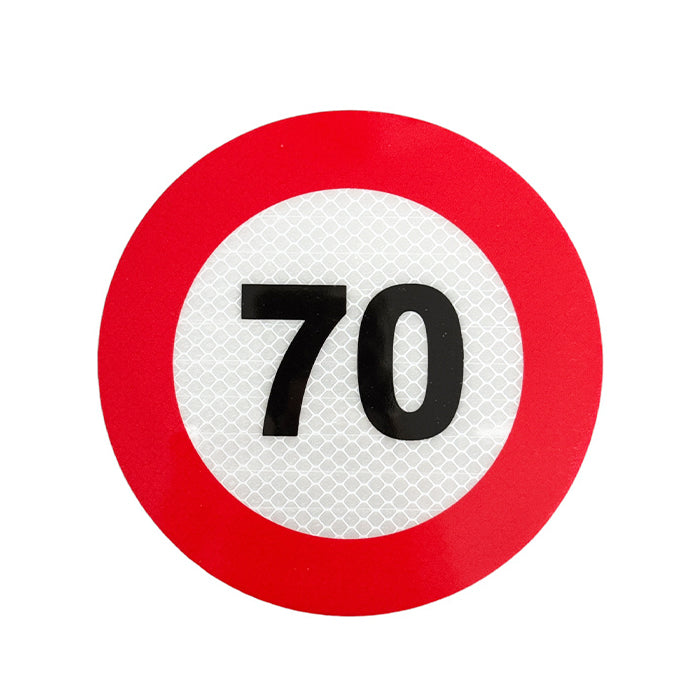 Цвят: Червена рамка с черен надпис "70"