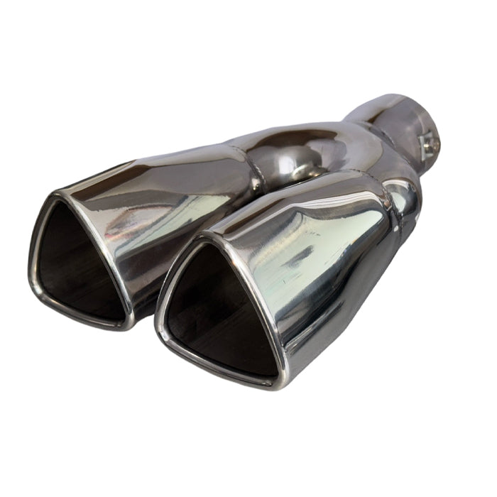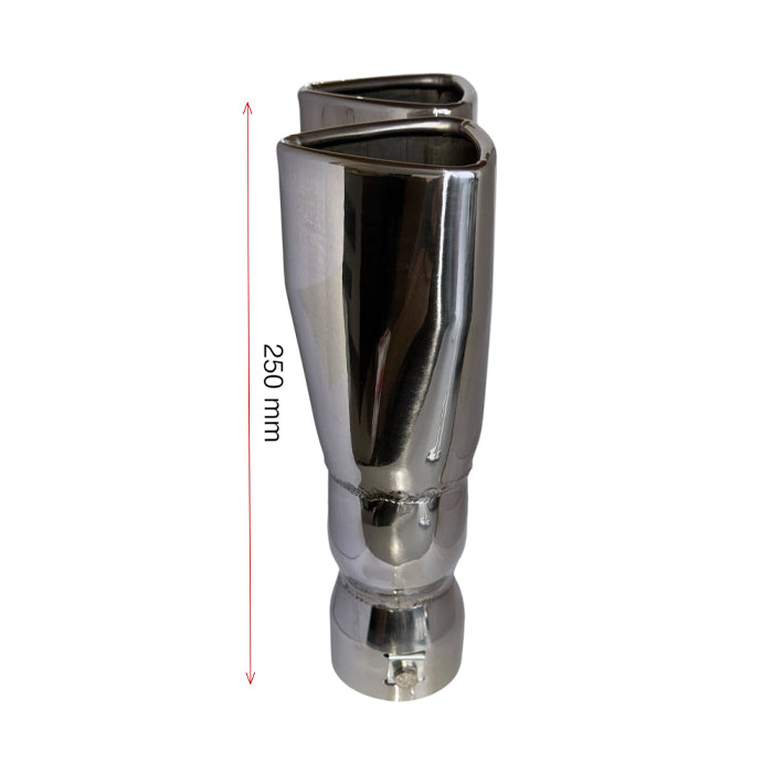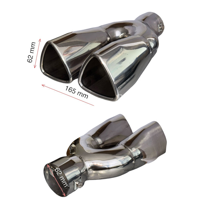 Накрайникът е изработен от никилиран метал.Начин на монтиране: Скоби Визия: Двоен.След монтажа накрайника ще придаде спортен вид на автомобила.