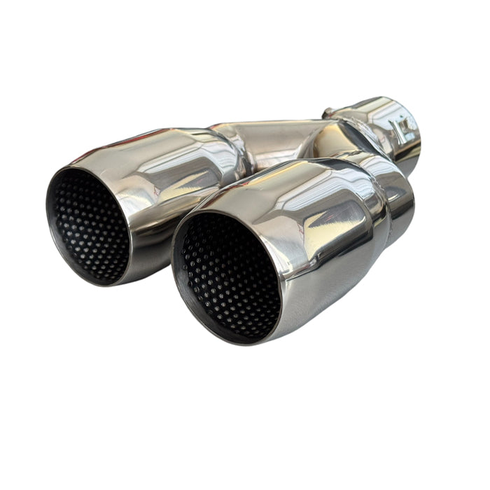 Накрайникът е изработен от никелиран метал.Начин на монтиране: Скоби Визия: Двоен.След монтажа накрайникът ще придаде спортен вид на автомобила.