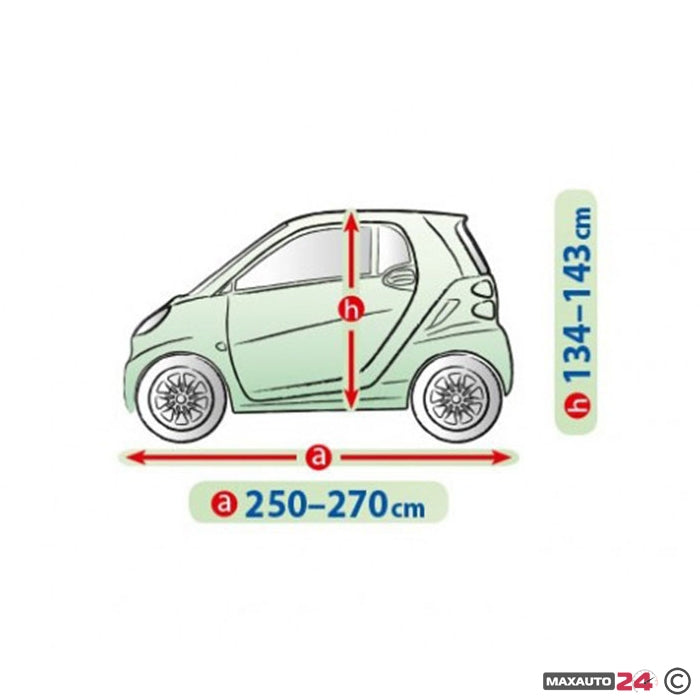 Сравнете формата на вашия автомобил със снимката на продукта (размерите са налични в поле "техническа информация"). Измерете колата си, като обърнете специално внимание на нейната дължина. Крайният размер е обиколката на автомобила, чрез този размер, ще имате по-точна представа кое покривало ще пасне най-добре.