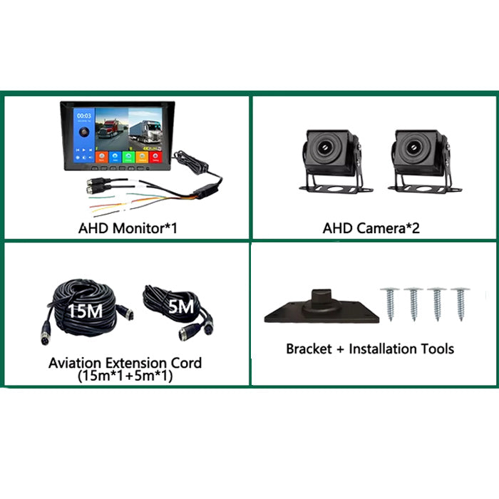 Системата за автомобилен монитор разполага с 2 канала за 720P AHD камери. В сравнение с безжичната WiFi камера, този тип камера има голямо предимство – няма забавяне на изображението, което я прави изключително подходяща за вашата безопасност по време на шофиране.