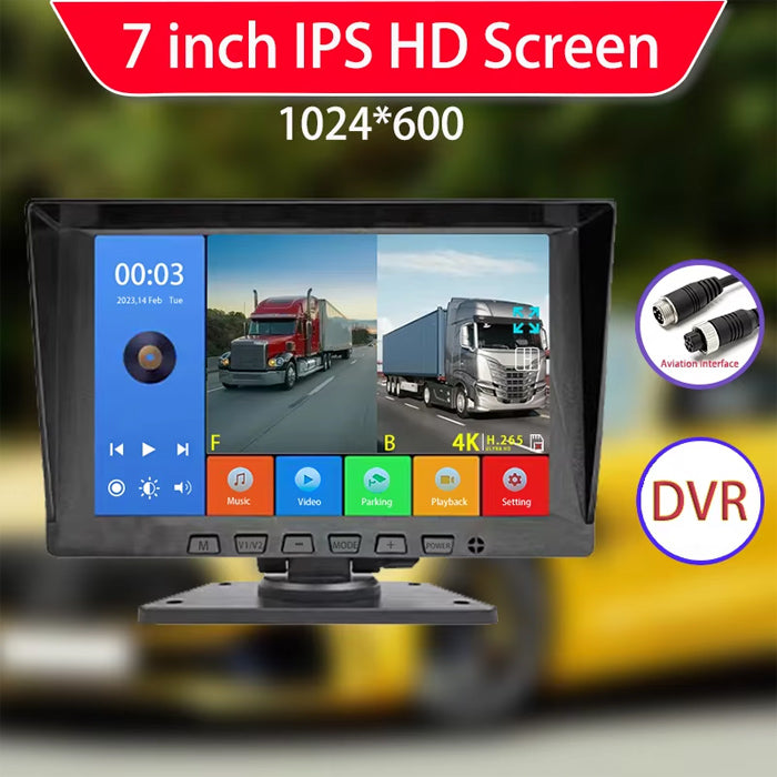 IPS мониторът превъзхожда другите видове монитори по отношение на точността на цветовете и консистенцията на екрана, което осигурява ясна картина по време на шофиране. С резолюция 1024x600 и яркост 600cd, мониторът поддържа AHD камери с резолюция 720P и 1080P.