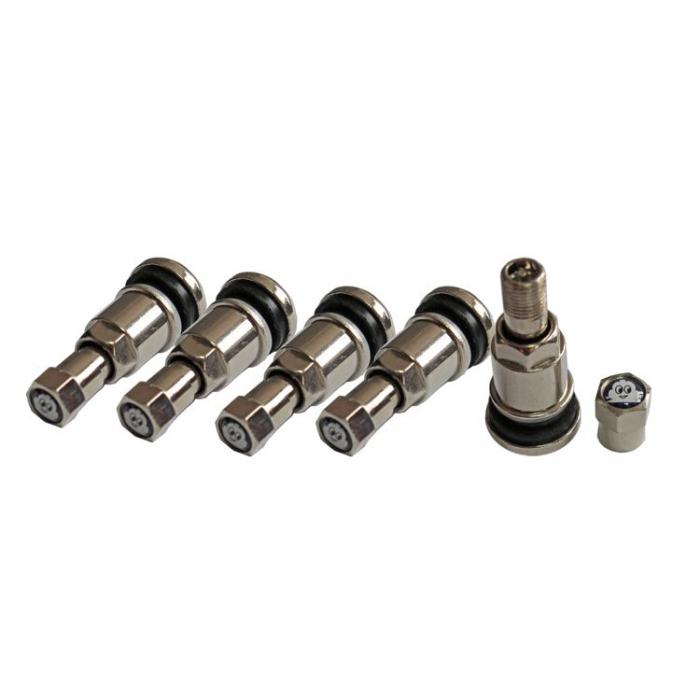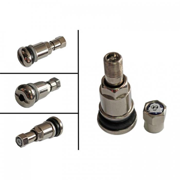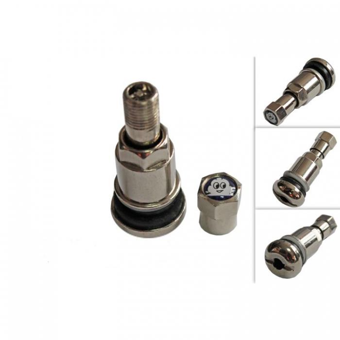 Метален вентил за безкамерни гуми на автомобил.