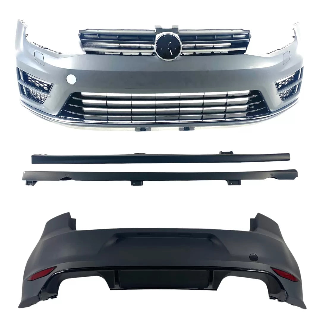 Боди кит пакет за Volkswagen Golf 7 в спортен R20 дизайн. Комплектът включва предна и задна броня, странични прагове и други елементи за агресивен и модерен външен вид. Изработен от висококачествена ABS пластмаса, готов за боядисване и с перфектно пасване към оригиналните точки за монтаж.