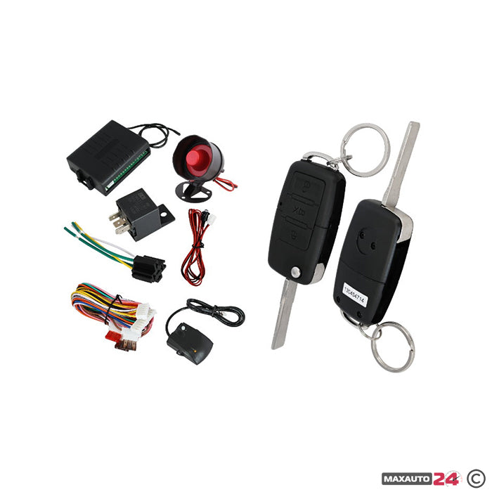 Предлага се с 2 броя дистанционни, реле за централно заключване (0.7/3,5 секунди), вход бутони при отрицателни и положително задействане.