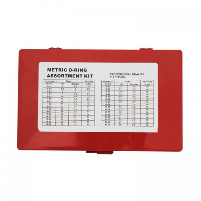 Съдържание: R-01 20бр - 3mm x 1.5mmR-02 20бр - 4.4mm x 2mmR-03 18бр - 5mm x 2mmR-04 23бр - 7mm x 1.5mmR-05 23бр - 10mm x 1.5mmR-06 23бр - 13mm x 1.5mmR-07 14бр - 10mm x 2.5mmR-08 13бр - 11mm x 2.5mmR-09 14бр - 13mm x 2.5mmR-10 13бр - 14mm x 2.5mmR-11 14бр - 16mm x 2.5mmR-12 14бр - 18mm x 2.5mmR-13 13бр - 19mm x 2.5mmR-14 14бр - 21mm x 2.5mmR-15 13бр - 22mm x 2.5mmR-16 10бр - 18mm x 3.5mmR-17 10бр - 20mm x 3. 5mmR-18 10бр - 22mm x 3.5mmR-19 10бр - 23.5mm x 3.5mmR-20 10бр - 25mm x 3.5mmR-21 10бр - 26.5mm x 3.5mmR-22 10бр - 28mm x 3.5mmR-23 10бр - 30mm x 3.5mmR-24 10бр - 31mm x 3.5mmR-25 10бр - 33mm x 3.5mmR-26 10бр - 34.5mm x 3.5mmR-27 10бр - 36mm x 3.5mmR-28 10бр - 38mm x 3.5mmR-29 10бр - 41mm x 3.5mmR-30 10бр - 44mm x 3.5mmR-31 10бр - 47mm x 3.5mmR-32 10бр - 50mm x 3.5mm