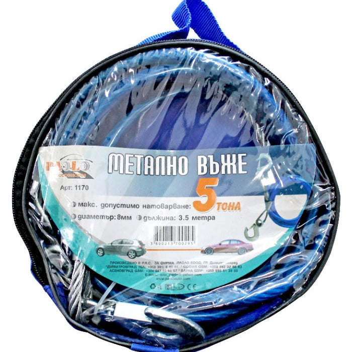 Въже за теглене метално издържа до 5 тона натоварване.