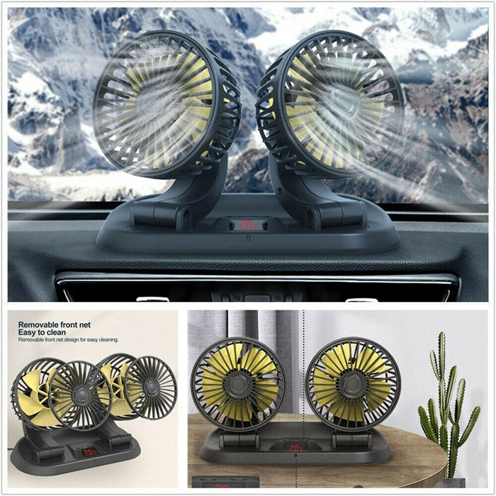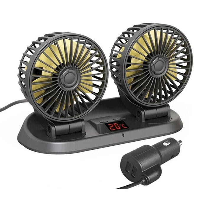 Вентилатор Двоен С Термометър 12-24V